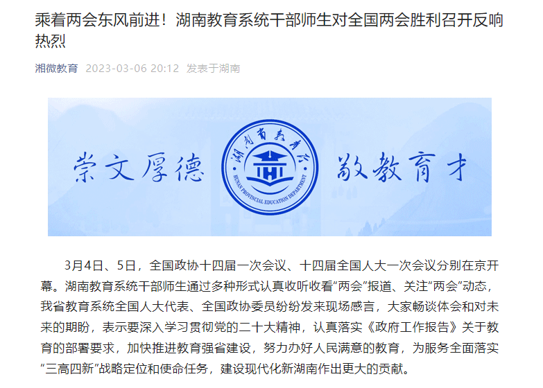 【湘微教育】乘着两会东风前进!湖南教育系统干部师生对全国两会胜利召开反响热烈