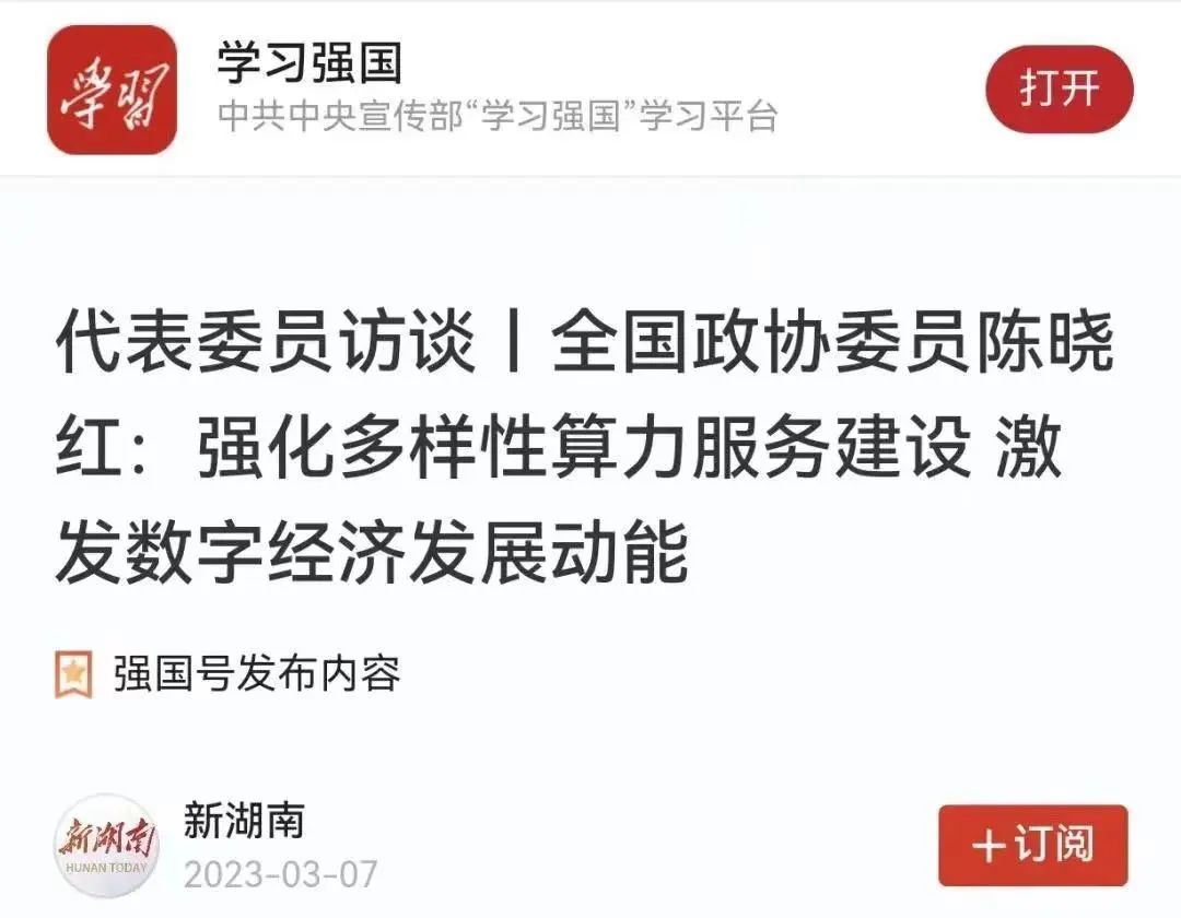 【学习强国】【湖南日报】全国政协委员陈晓红:强化多样性算力服务建设 激发数字经济发展动能
