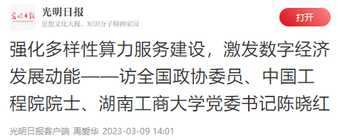 【光明日报】强化多样性算力服务建设,激发数字经济发展动能——访全国政协委员、中国工程院院士、湖南工商大学党委书记陈晓红