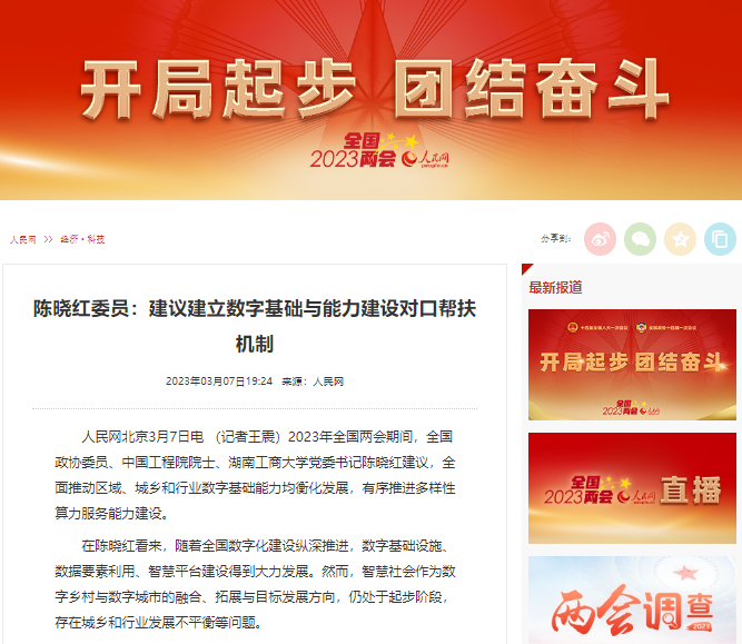 【人民网】陈晓红委员:建议建立数字基础与能力建设对口帮扶机制