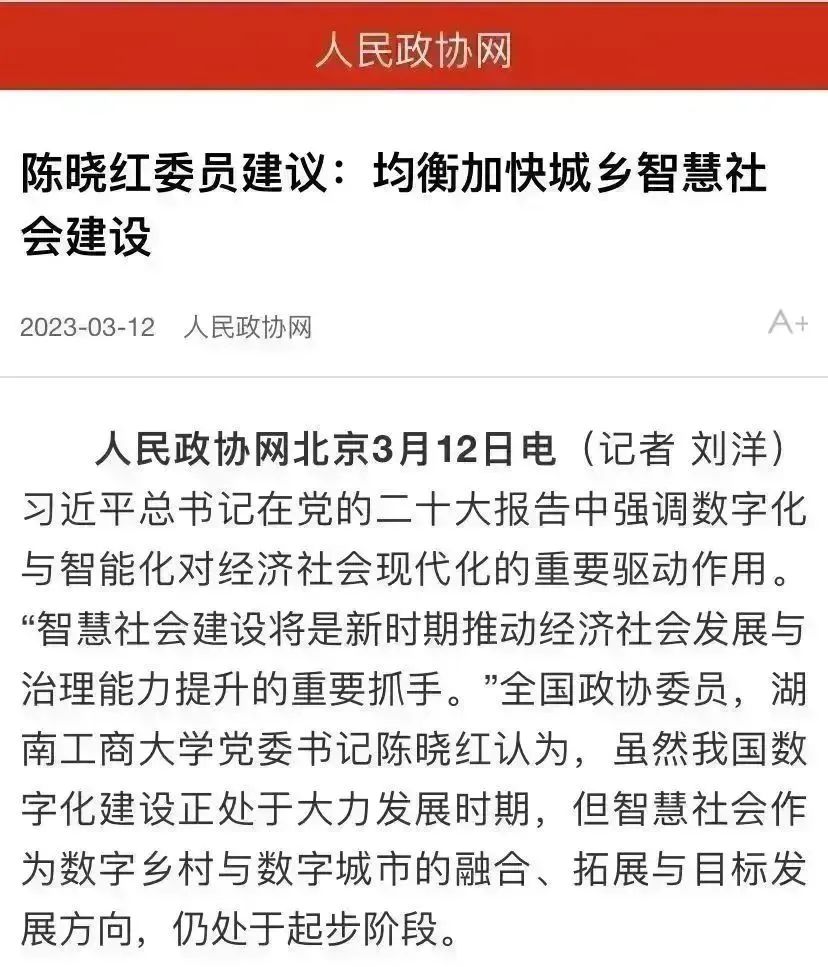 【人民政协报】【人民政协网】陈晓红委员建议:均衡加快城乡智慧社会建设