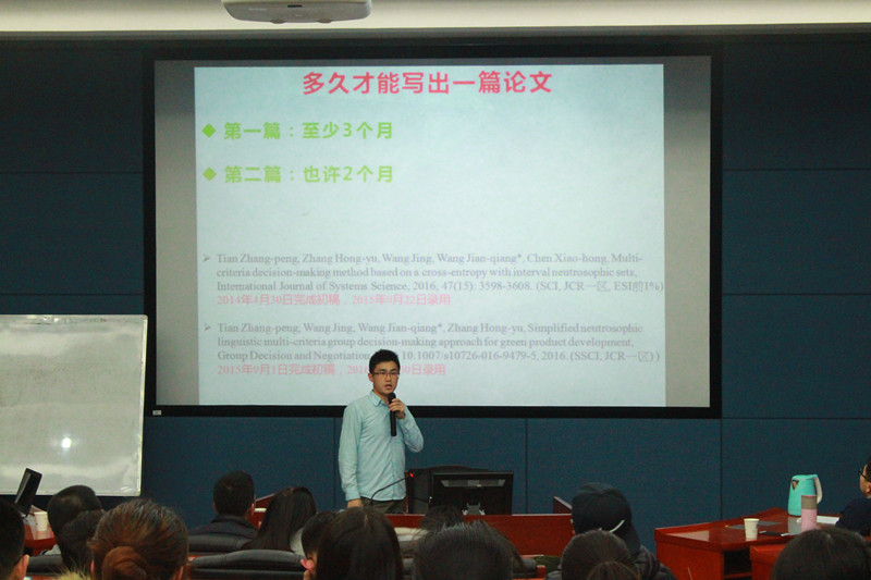 12月19日晚上7点,为提高研究生的论文写作技能,解答大家学术方面的困惑,由william威廉中文官网研究生会承办的博思沙龙在管理楼管阶二教室举行,本次沙龙邀请到了陈武华老师、杨鑫博士、田章朋博士三位学术达人来分享论文开题、写作、发表等技巧和经验。研究生辅导员胡维老师、蒋宁老师以及一百多名研究生参加了本次沙龙。