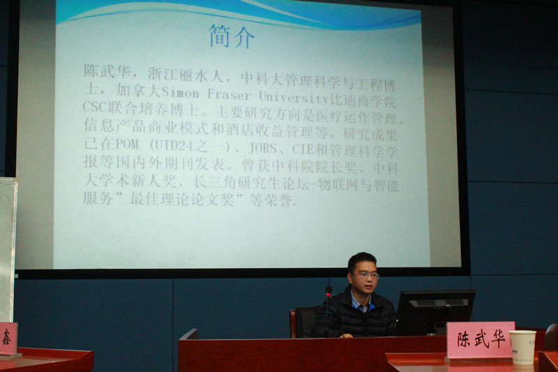 陈武华老师分享了自己做科研的体会,他认为研究生阶段应培养科研能力、综合能力、反思能力这些基本素质,写论文要早准备、常交流、常反思,科研上要勤学、勤读、勤思、勤做。然后陈老师以“选题-建模-求解-解释”为主线,阐述了论文写作的过程。在写作方面,陈老师建议我们掌握科技论文写作的范式,按照“套路”写作。