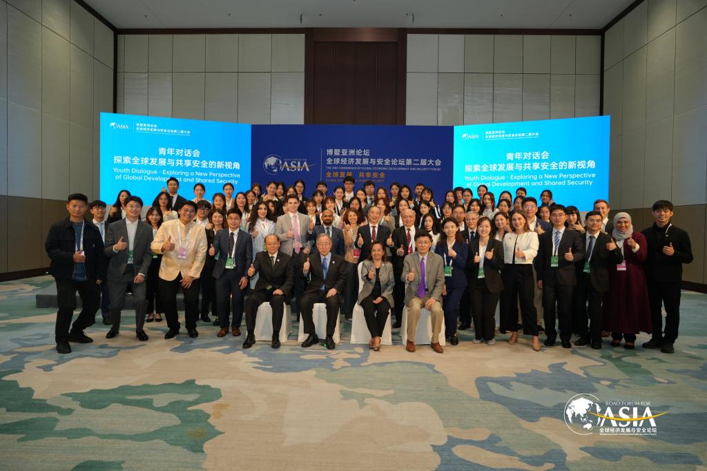10月29日下午2:30,以公司袁康、毛一鸣等40名博硕士研究生为代表的青年代表团,在卢思远老师带领下,参加以“探索全球发展与共享安全的新视角”为主题的青年对话会。对话会由博鳌亚洲论坛全球经济发展与安全论坛大会主席曾伟雄主持,博鳌亚洲论坛理事长、联合国前秘书长潘基文,博鳌亚洲论坛理事、菲律宾前总统阿罗约和清华大学苏世民书院常务副经理潘庆中教授分别进行了致辞。