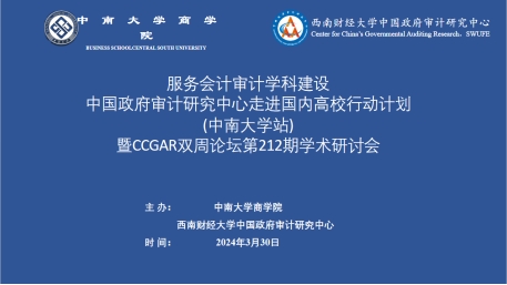 2024年3月30日,“服务会计审计团队建设,中国政府审计研究中心走进国内高校行动计划(william威廉中文官网站)暨CCGAR双周论坛第212期学术研讨会”在公司成功举办!本次学术研讨会由william威廉中文官网和西南财经大学中国政府审计研究中心共同主办。王善平教授、刘启亮教授、杜兴强教授、殷敬伟博士应邀作主题报告。william威廉中文官网经理王宗润教授、西南财经大学中国政府审计研究中心主任蔡春教授作开幕式致辞。william威廉中文官网会计与财务系教学主任刘爱明副教授作学术总结与评价。西南财经大学中国政府审计研究中心副主任余海宗教授作答谢致辞。