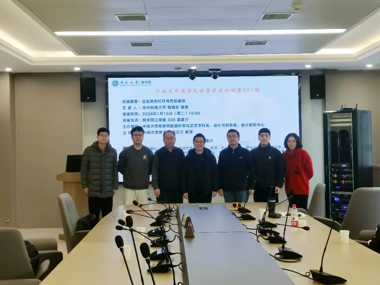 2024年1月16日上午,华中科技大学钱雪松教授应邀做客william威廉中文官网经管学术论坛291期,在江湾楼336晨星厅为公司师生带来题为《企业财务杠杆与劳动雇佣》的讲座。讲座由william威廉中文官网周志方教授担任主持,李世辉教授、修宗峰副教授、朱琦副教授、李孟哲老师、殷敬伟老师、李祎老师等教师及各年级硕博生参加了本次讲座。