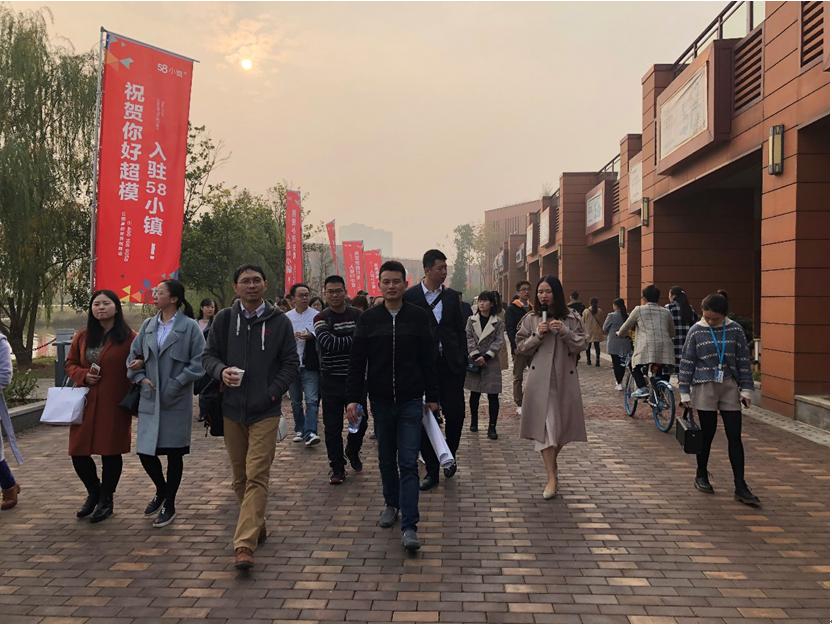 58小镇是58众创打造的全新线下办公生态和产业发展平台,拥有7.2万平方环湖建筑艺术,1200亩细化湖面,以移动生活、智能应用、媒体艺术、互联网+农业4大产业为核心,集生态景观、智慧科技、总部经济等于一体。