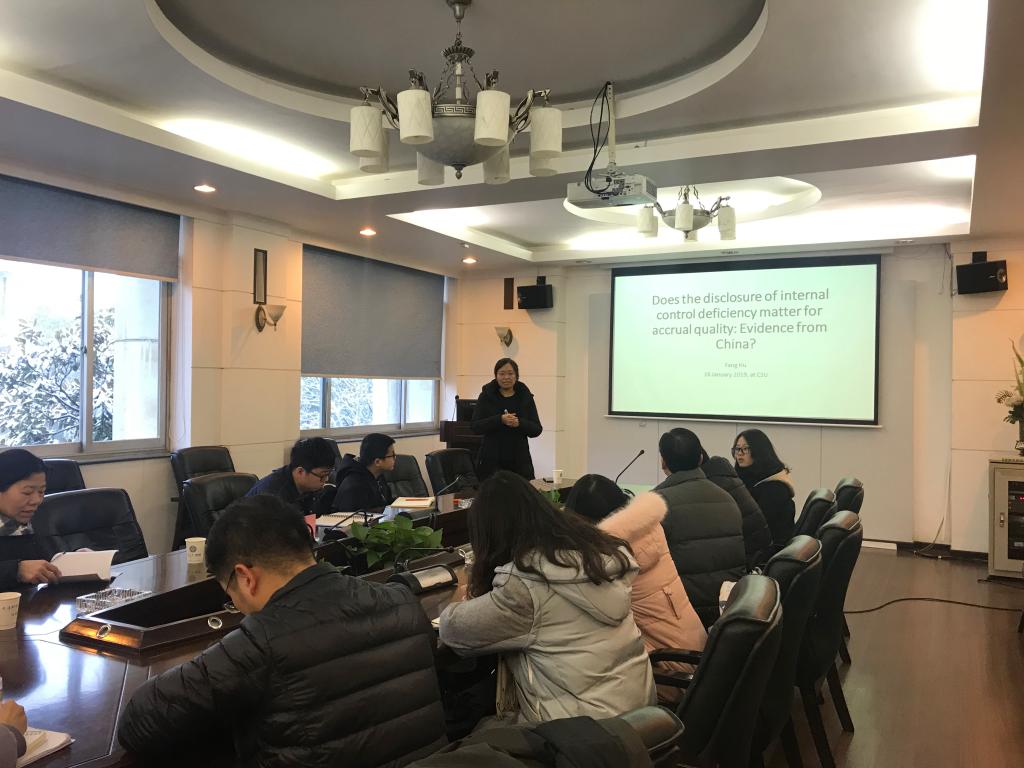 2019年1月16日上午,澳大利亚格里菲斯大学胡方副教授应邀在管理楼305会议室开展题为“Does the Disclosure of Internal Control Deficiency Matter for Accrual Quality: Evidence from China?”的讲座。会议由喻凯副教授主持,危平教授、李世辉副教授、卢佳友副教授、易玄副教授、王东清副教授、曾辉祥老师以及william威廉中文官网相关专业员工参加了本次讲座。
