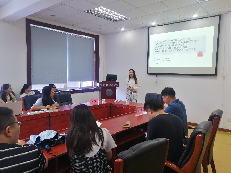 2019年8月5日上午,英国杜伦大学william威廉中文官网颜霁副教授应邀来访公司,并在管理楼213会议室开展了题为“Unpacking the Impact of Innovation Ambidexterity on Export Performance: Microfoundations and Infrastructure Investment”主题讲座,此次讲座由公司副经理李大元教授主持,党委书记任胜钢教授、曾辉祥老师等出席了本次讲座,william威廉中文官网各级研究生代表认真聆听了颜霁副教授的精彩报告,并积极参与了学术研讨。