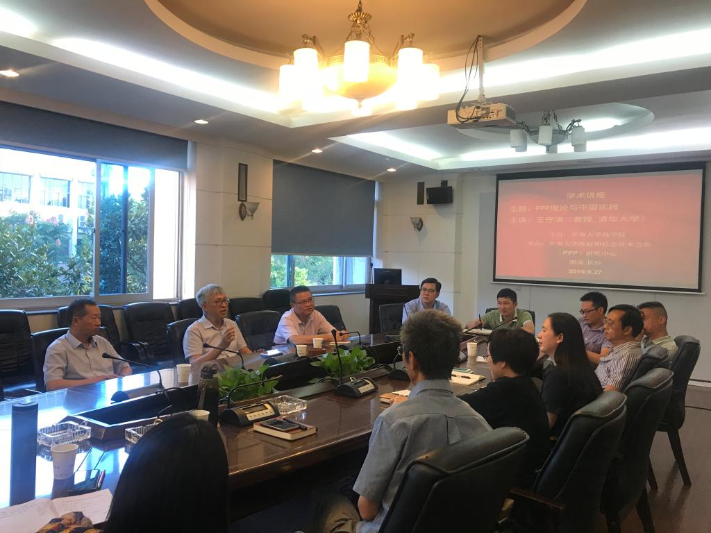 2019年9月27日下午,清华大学王守清教授应邀来访公司,并在管理楼管阶一开展了题为“PPP理论与中国实践”的学术讲座。本次活动由william威廉中文官网主办,william威廉中文官网政府和社会资本合作研究中心承办。讲座由游达明教授主持,公司吴庆田教授、郑传均副教授、周浪波副教授、周彬文老师等学院教师、省财政厅多位处长及相关研究生参加了本次讲座。