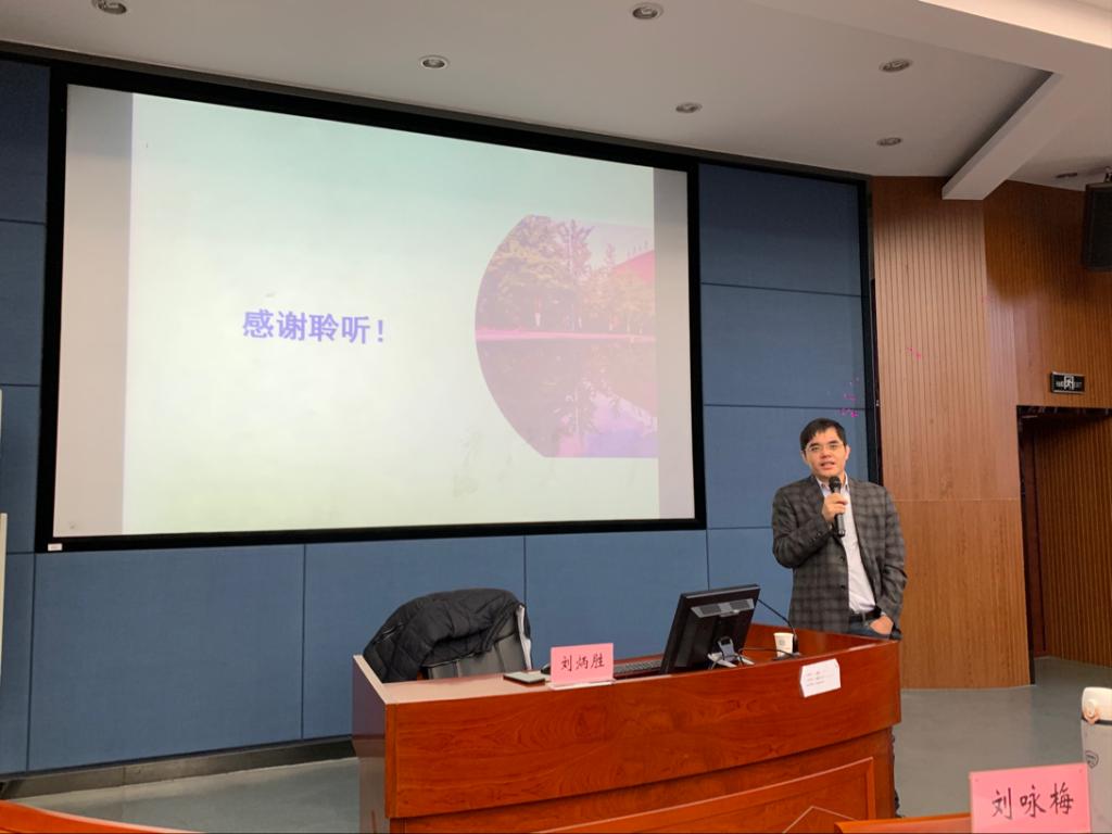 讲座开始前,刘咏梅教授对刘炳胜教授的学术成就、研究领域以及社会影响进行介绍,并对刘炳胜教授的到来表示热烈的欢迎和衷心感谢。刘炳胜教授主要从青年人才成长的感受以及人才项目申报分享两个方面再结合自己的科研经历介绍了自己的学术成长之路以及其中的体会与感想。首先是青年人才的成长感受方面,刘教授首先提出了当代青年人才应该做到“格物取势,天道酬勤”。他提出,上天一定会善待努力奋斗的人,但是当大家的努力程度不能拉开差距的时候,个人自身的特点就非常重要。当代青年人一定要有自己不同于其他人的特点,来帮助自己在众多的竞争者中脱颖而出。然后刘教授举出了中国女排和天津女排的例子,生动形象的说明了当团体或整体在某一方面特点不够突出的时候,可以采用“主攻副打,副攻主打”的策略来帮助团体在整体取得最优。接下来刘教授分享了当代青年做科学研究应该在研究方向、研究方法、研究理念以及研究团队等方面所要遵循的原则以及方向。另一方面是人才项目的申报,刘教授跟我们分享了申请人才项目应该在立德树人、创新、未来研究等各个方面应该如何做。最后,刘教授简要介绍了申请人才项目应该做到的科研贡献。刘教授的讲座在一片热烈的掌声中圆满结束,师生们都表示受益匪浅,十分感谢刘教授的分享。