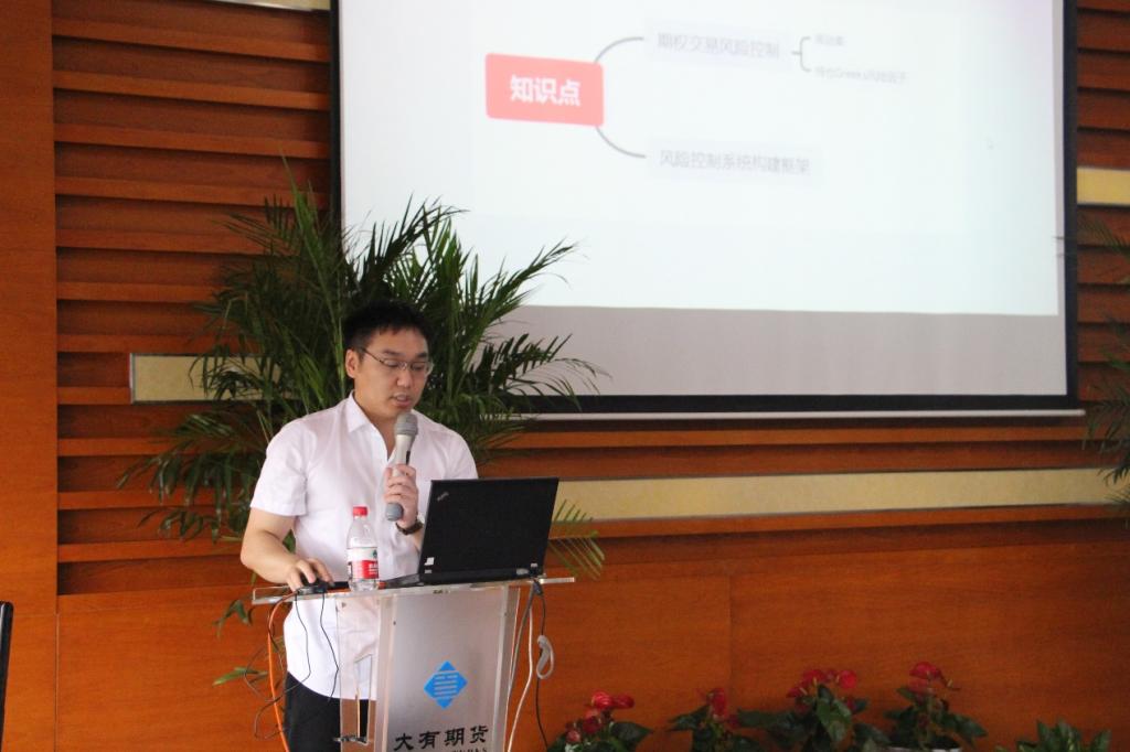 武超,大有期货夯石商贸期权中心风控专员,主要负责场外期权风险控制,市场定价分析,对冲策略研究。擅长期权定价,策略回测,买方对冲。由他带来第二节课——股指期权对冲操作及风控。课程内容分为两大部分:期权交易风险控制以及风险控制系统构建框架。课程幽默风趣,通过和同学们的积极互动,同学们对课程知识内容有了更深入的理解。