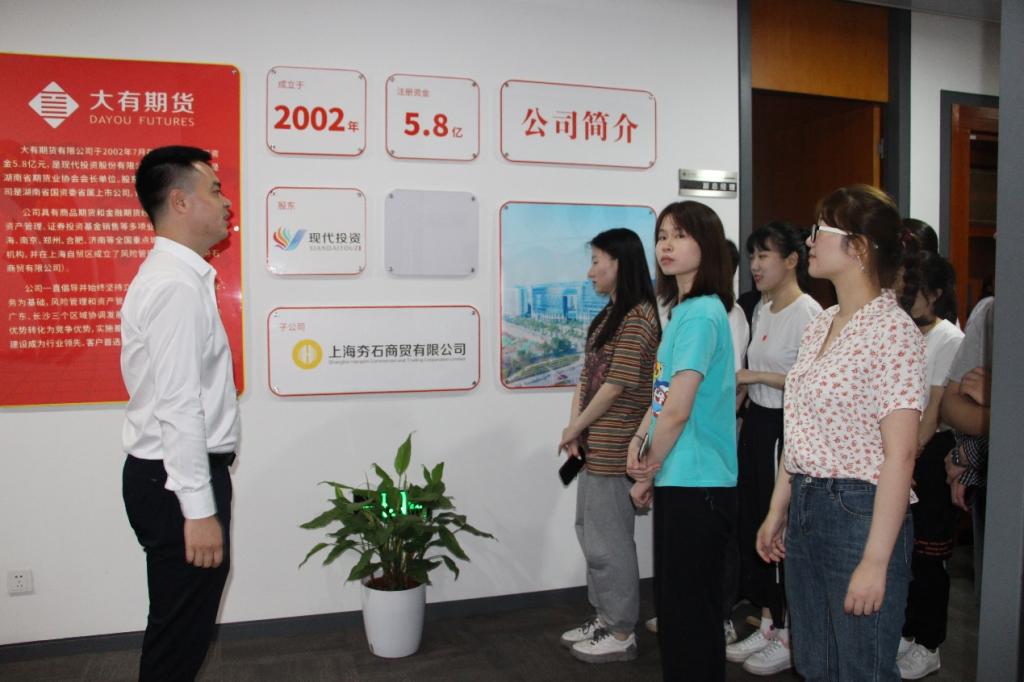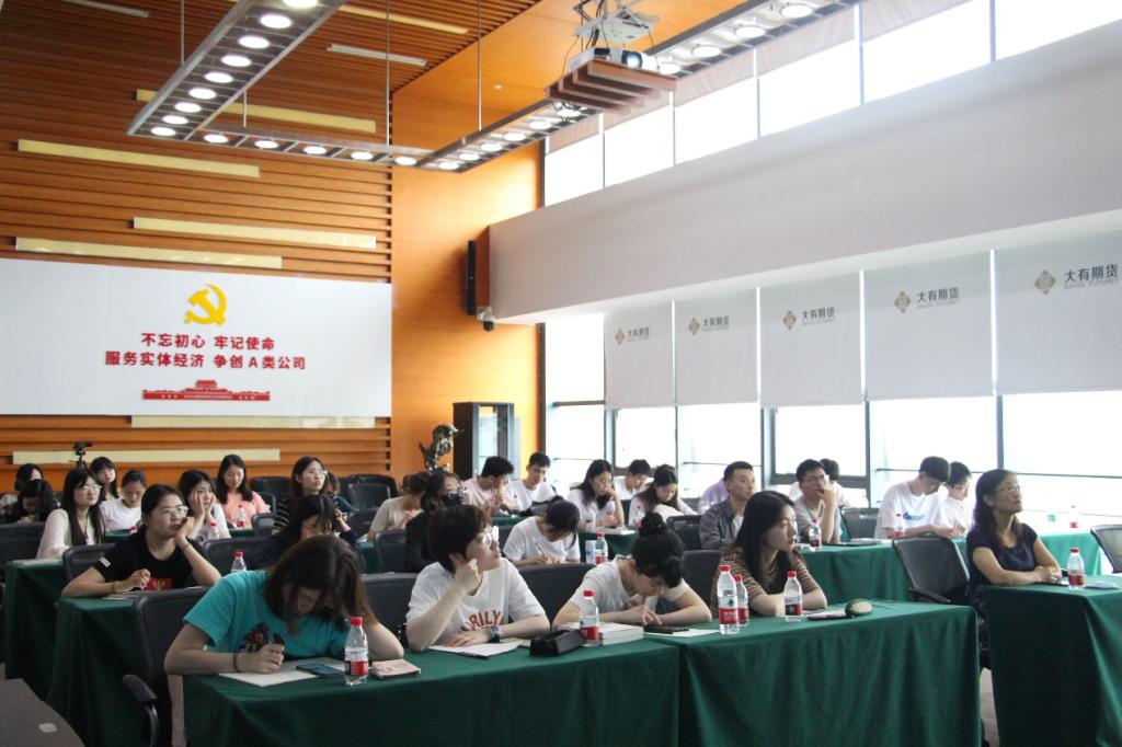 讲座伊始,大有期货有限公司副总经理肖龙为大家介绍了大有期货公司的基本信息、公司文化以及目前开展的业务等。肖总曾任大有期货研究所所长、大有期货香港子公司持牌负责人,培训讲座经验丰富,拥有二十余年丰富的实战经验。对公司概况有了基本了解之后,同学们在工作人员的带领下参观了大有期货公司。
