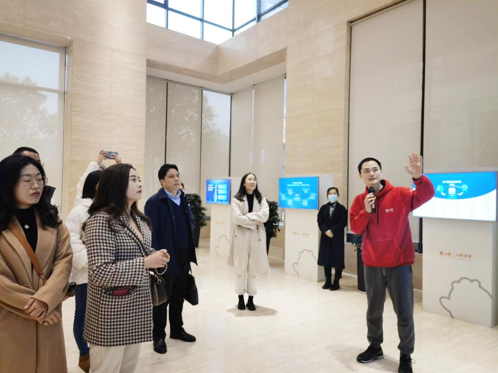 在展示厅内,八戒科技COO(MBA2021级1班学员)涂雨向游学团一行详细介绍了猪八戒网以及八戒科技的发展情况。