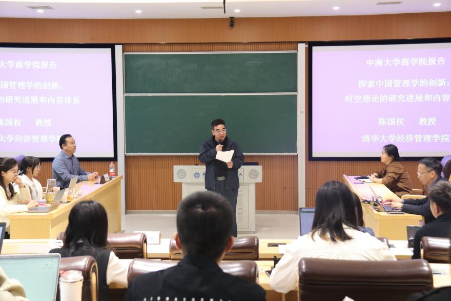 陈国权教授围绕建立原创性管理理论的意义、时空理论的研究进展和内容体系、时空理论的应用和影响三个部分就行了深入细致的分享。讲座伊始,陈教授表示西方管理理论虽然对中国的管理教育和实践起到了重要作用,但是随着中国经济和社会的迅速发展以及世界形势的不断变化,需要建立源自中国的管理学理论。其次,他提出了时空理论的三个哲学前提以及时空理论的总体模型,并详细介绍了领导者如何通过时间和空间两个视角,多层次、多维度和动态地进行分析和决策。最后,基于大量案例,陈教授对时空理论的模型、命题等进行了具体阐释,充分展示了时空理论的应用成果。