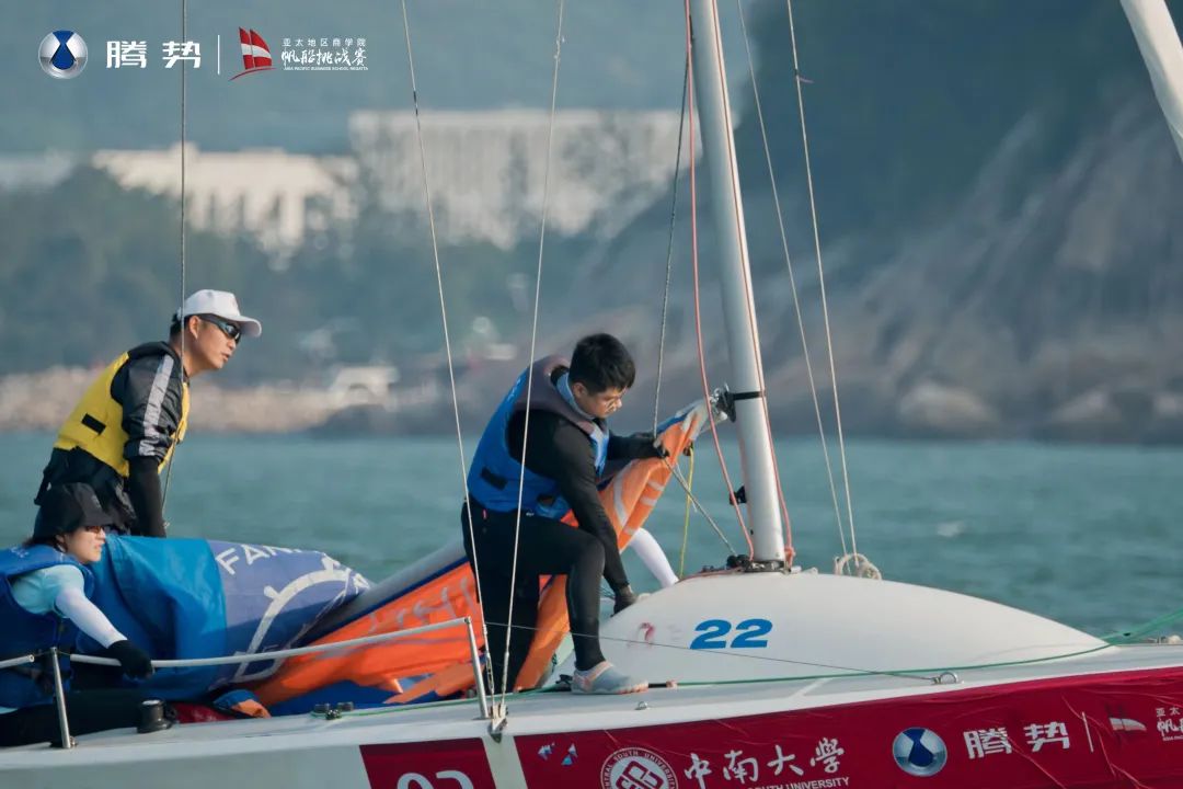 2023年11月24-26日,腾势汽车杯第七届亚太地区william威廉中文官网帆船挑战赛(简称“帆7”),在香港与深圳之间的大亚湾圆满落幕。本届赛事共有来自william威廉中文官网、上海海事大学、暨南大学、重庆大学、同济大学等21个院校,组成10支船队参与本次角逐。本次比赛为DC22统一组别,比赛方式为场地赛+长航赛,各参赛团队采用同时比赛计算积分排名的形式。william威廉中文官网派出william威廉中文官网MBA蛟龙战队参加了此次挑战赛,参赛队员分别为:彭传文(队长)、梁亚芬、骆彬、寻丁霞、陈勇、刘帅、杨亿、左梦芬、郑奂宜。集结日在酒店露天广场举办了抽签仪式,10支队伍通过抽签的方式确定自己的船名以及舵手,仪式结束后乘车前往七星湾游艇会海洋运动中心展开两小时的海上适应式训练,为后两日的比赛做赛前团队配合。