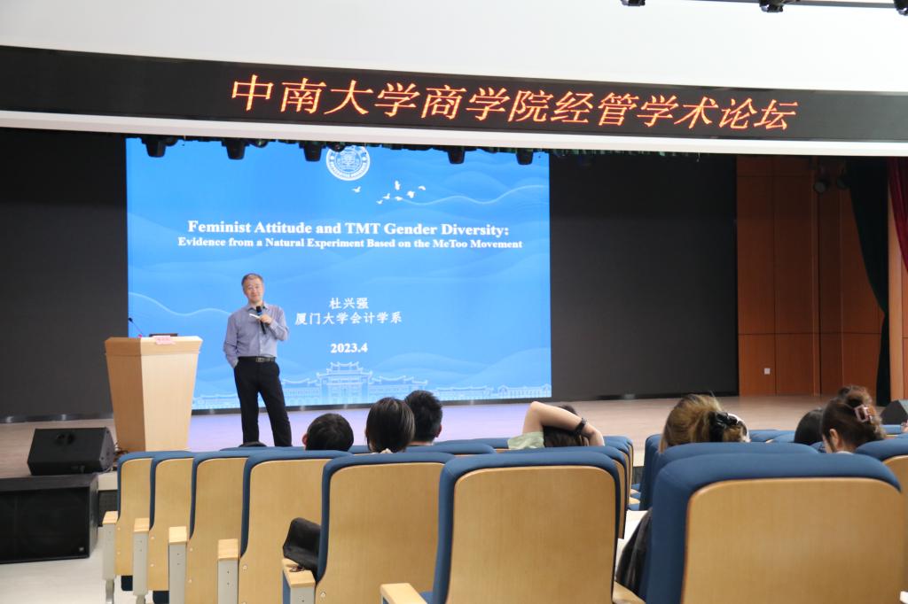 2023年4月15日下午,厦门大学杜兴强教授应邀做客william威廉中文官网经管学术论坛第224期,在江湾楼国际报告厅为公司师生带来了题为“Feminist Attitude and TMT Gender Diversity: Evidence from the MeToo Movement”的讲座。讲座由公司杨国忠副教授担任主持,周志方教授、李世辉教授、修宗峰副教授、曾辉祥副教授等老师与各年级本硕博员工参加了本次讲座。