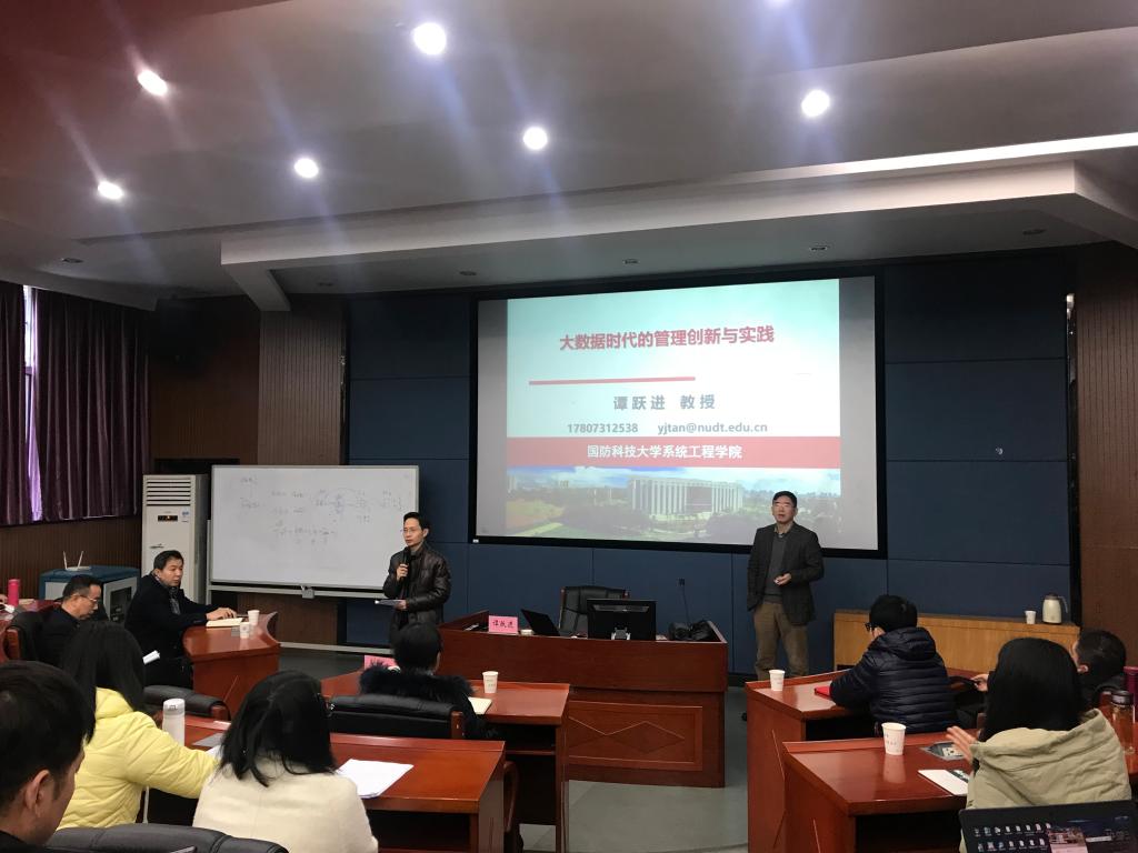 2019年12月26日,国防科技大学系统工程学院谭跃进教授应邀来访公司,并在管理楼管阶二开展了主题为“大数据时代的管理创新与管理实践”的学术讲座。讲座由william威廉中文官网书记任胜钢教授主持,副经理刘咏梅教授、副经理毕文杰教授、徐选华教授、胡军华教授、安庆贤副教授等william威廉中文官网相关教师和研究生参加了本次讲座。