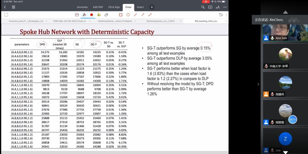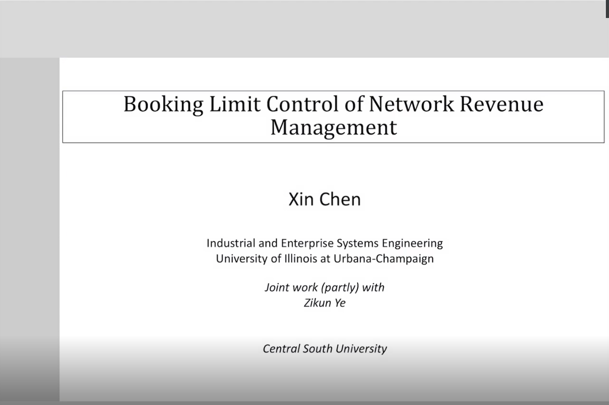 2020年7月6日上午,由学院运营与供应链研究中心、服务科学与服务管理研究中心、管理科学与信息管理系、企业管理系联合主办的“数字赋能的企业智慧运营”系列讲座第三期于线上平台开讲。第三期的主讲嘉宾是美国伊利诺伊大学香槟分校陈新教授,交流主题为“Booking limit control in network revenue management with uncertain capacities”。讲座由服务科学与服务管理研究中心主任周雄伟教授主持,周艳菊教授、王傅强副教授等老师,与william威廉中文官网MBA员工、本科生、硕士生和博士生等120多名师生参加了此次线上讲座。