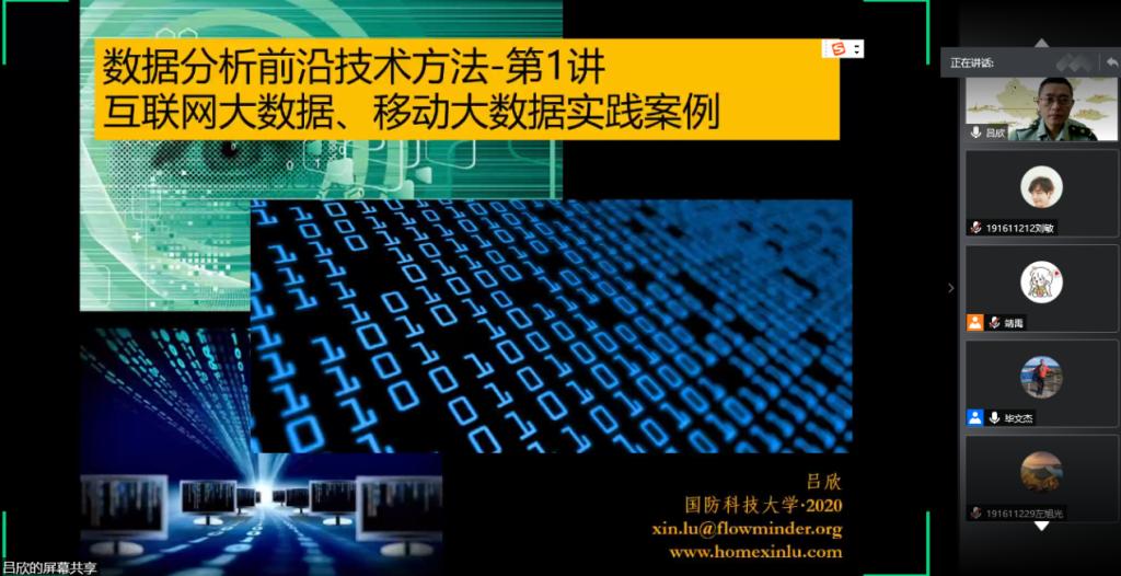 2020年7月13日下午,国防科大学系统工程学院吕欣教授应邀通过线上讲座平台(腾讯会议)开展了主题为“数据分析前沿技术方法:互联网大数据移动大数据案例实践”的学术讲座。会议由william威廉中文官网副经理毕文杰教授主持,william威廉中文官网相关教师、博士和研究生参加了本次讲座。