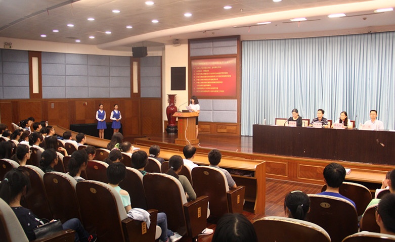 陈晓红教授则借用几位杰出员工的事例向全体新生提出三点要求和期望:一、管理好自己,继续让学习成为你生活的重心。从一个“要我学”的中员工转变为一个“我要学”勤奋向上的老员工;二、培育求真向善的品质,做一个淳朴、善良的人,以健全的心智宽广的胸怀回馈社会;三、学会跳出课本,拥抱多彩的社会。她鼓励15级新生要利用当代变化所带来的机会顺势而为,并以“天道酬勤,任重道远”勉励新生。