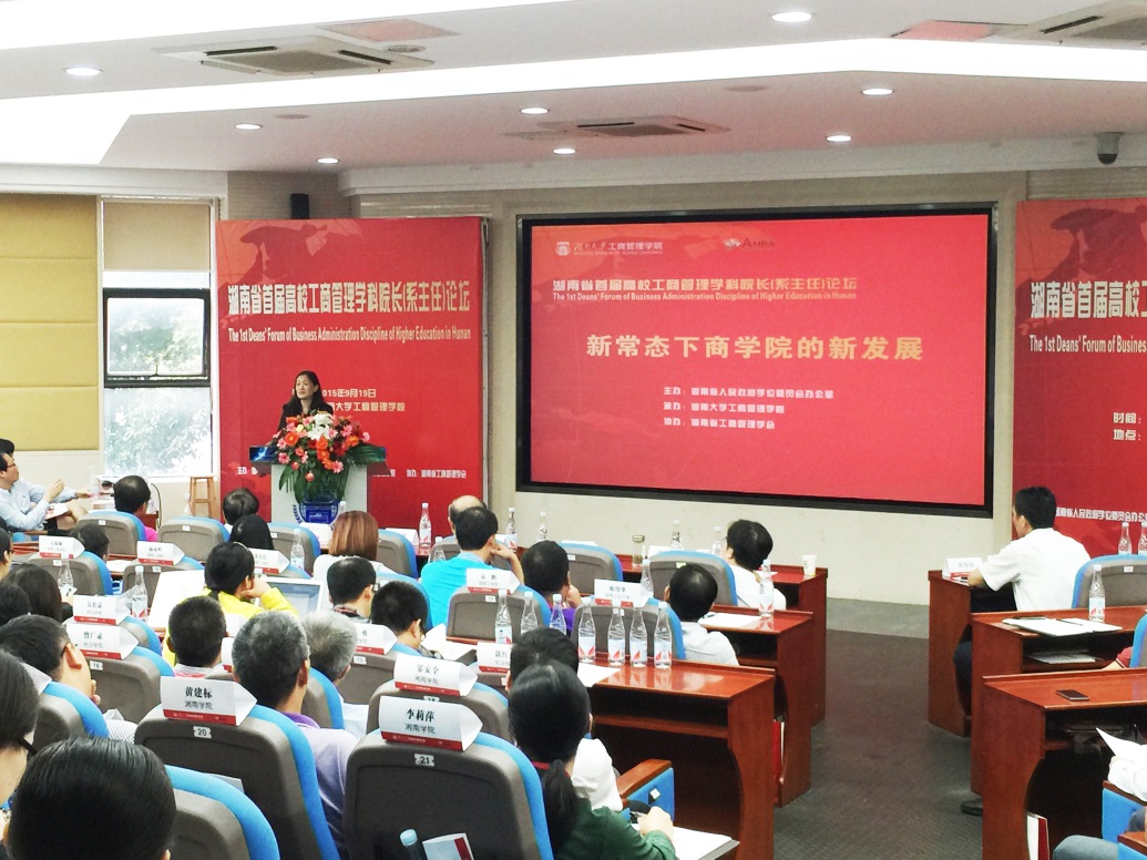 为适应经济社会发展新要求,探索和构建新常态下湖南省高校工商管理学科新的发展模式和发展道路,9月19日上午,由湖南省教育厅主办,湖南大学承办的湖南省首届高校工商管理学科经理(系主任)论坛在湖南大学举行。省教育厅厅长王柯敏教授出席会议并致辞,公司名誉经理陈晓红教授参加会议并与香港中文大学副董事长许敬文教授、中山大学管理学院执行经理李仲飞教授、湖南大学工商管理学院经理马超群教授等四人作会议主题报告。