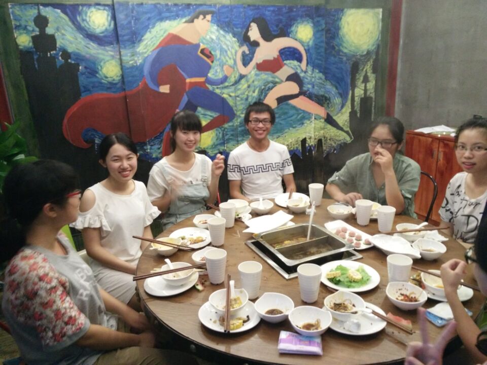 下午五点,大家徒步来到学校附近的泥汐小火锅。在聚餐之时,大家轮流进行自我介绍,畅聊暑期生活趣事。本来是不同专业的不相识的同学,坐在一起却像是多年后再相聚的老朋友。聚餐结束后,大家进行了大合影。