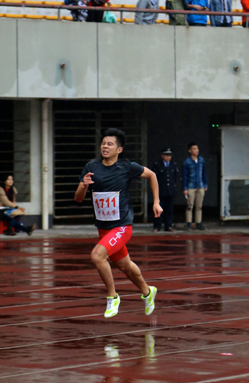 淅沥的大雨中,一个矫健的身影闪过,冲过终点,轻松将对手远远甩到身后。这是本届校运会男子400米的一幕。
