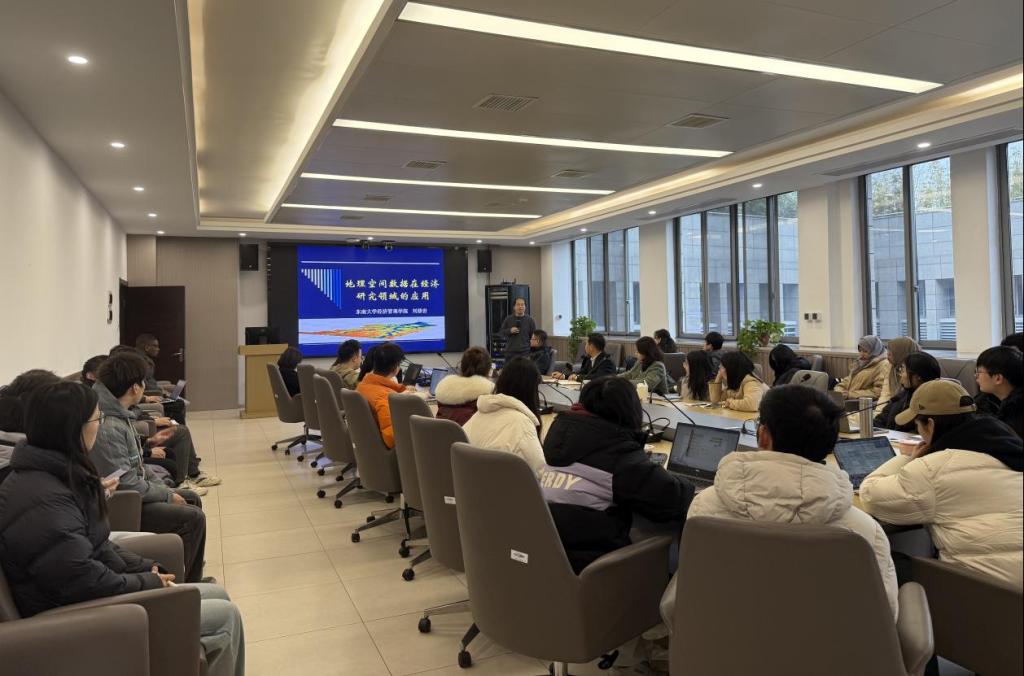 在交流环节,参会师生踊跃发言,围绕地理空间数据的类型划分、数据采集渠道、具体应用领域以及如何避免数据误用等问题展开讨论。刘教授一一耐心解答,并分享了其研究心得与经验。本次交流内容丰富、案例详实,不仅拓宽了同学们的研究视野,也为地理空间数据在经济学领域的进一步应用提供了重要启示。(图文:李行;一审:陈格,二审:万萍,三审:危平)