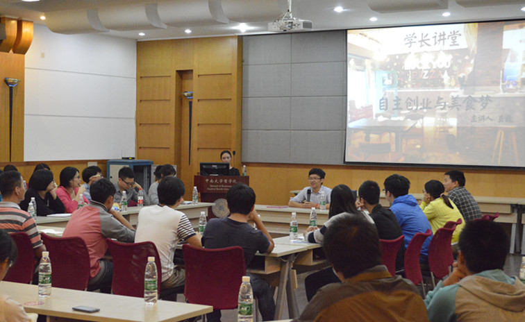 讲座现场还分发了龚巍先生Lucky Go披萨店里的披萨,大家一边吃着披萨,一边与他轻松地交流。龚巍先生向大家介绍了他的披萨店以及他的创业思想和创业模式,使得在场的同学们都对自主创业有了全新的认识。