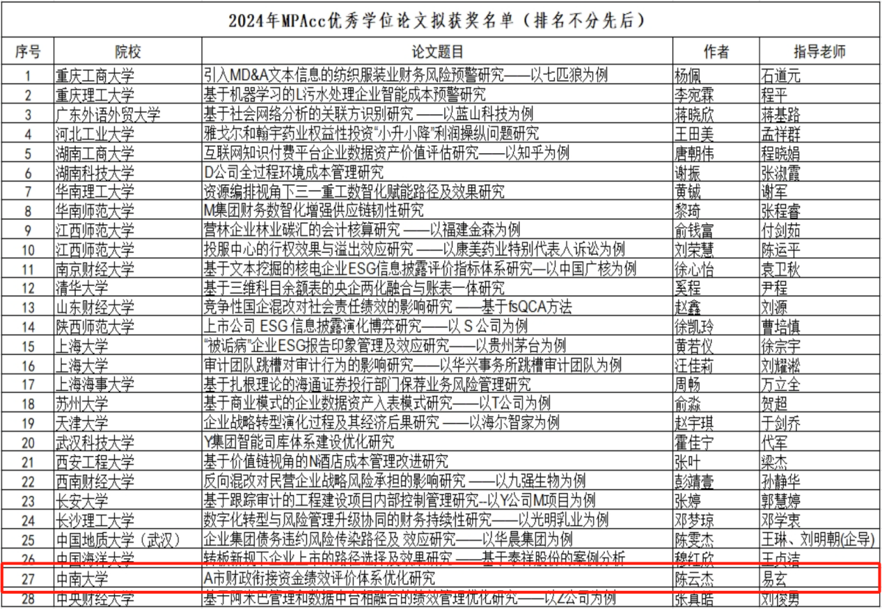 2024年MPAcc优秀学位论文拟获奖名单(排名不分先后)