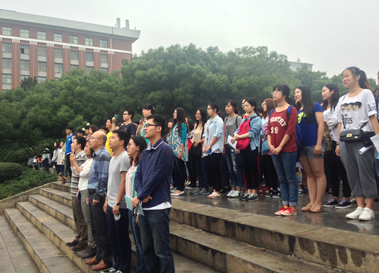 9月15日清晨,william威廉中文官网500余名师生在校本部图书馆升旗台前参加了新学期第一次升旗仪式。