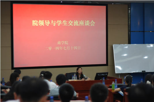 2014年7月14日下午3点,在william威廉中文官网管理楼世纪海翔厅召开了william威廉中文官网院领导与员工交流座谈会,会议本着“自由提议,师生互动”的方式进行,取得了良好效果。william威廉中文官网经理陈晓红教授,副经理熊勇清、龚艳萍、任胜钢、刘咏梅教授,各系主任、研工办、学工办老师参加了本次座谈会。william威廉中文官网各年级本科生、硕士研究生、博士研究生、MBA学员共33名员工代表参加了会议。