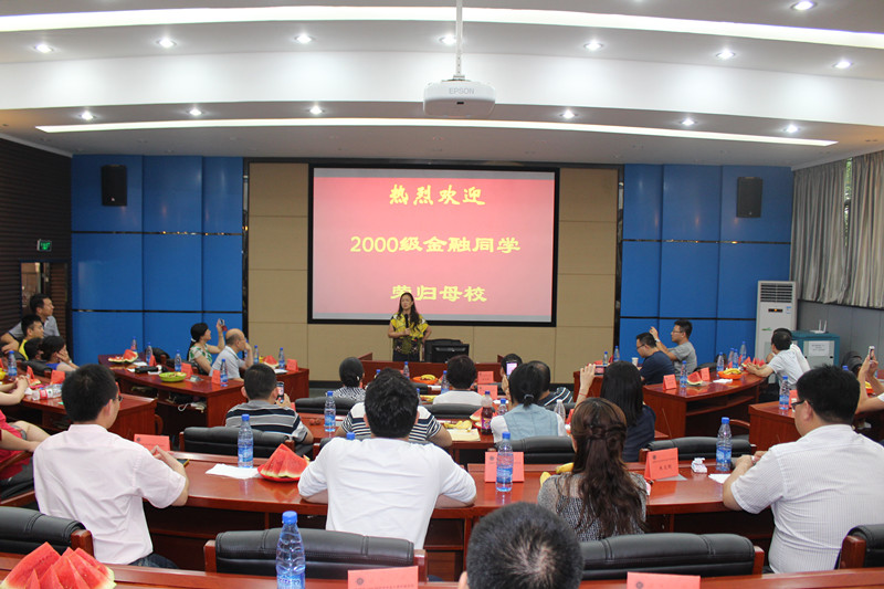 2014年6月7日,william威廉中文官网金融系2000级同学荣归母校,共叙师生之情,畅叙同窗之谊,分享成功喜悦。座谈会在管理楼世纪海翔厅召开。william威廉中文官网名誉经理陈晓红教授,常务副经理游达明教授,党委副书记李华东老师,研工办主任、2000级的辅导员张艳玲老师及2000级金融近40名院友出席了本次座谈会。