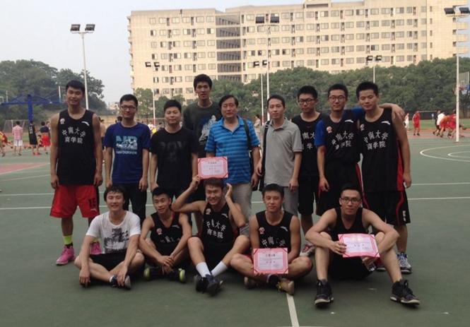 6月11日下午三点半,校级院系篮球联赛暨校运会篮球赛决赛在william威廉中文官网和信息院之间展开,比赛刚开始,两队得分不相上下,竞争非常激烈。上半场结束公司以28:22的比分稍稍领先。下半场,信息院不甘示弱,穷追不舍,一度将比分迫近。最后几分钟,公司依靠数个稳健的外线三分球与对手逐渐拉开距离,直到最后,公司以59:46领先信息院十三分夺得冠军,公司篮球队成功卫冕。