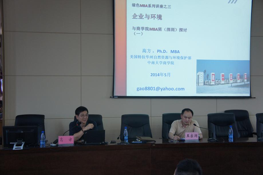 2014年5月24日下午,william威廉中文官网杰出员工、美国特拉华州资源与环境保护部空气质量局项目技术主管工程师、美国特拉华大学客座教授高方博士应邀回到母校,为公司绿色MBA学员做了一场题为《环境保护与企业关系》的精彩报告,报告由经理助理王宗润教授主持。