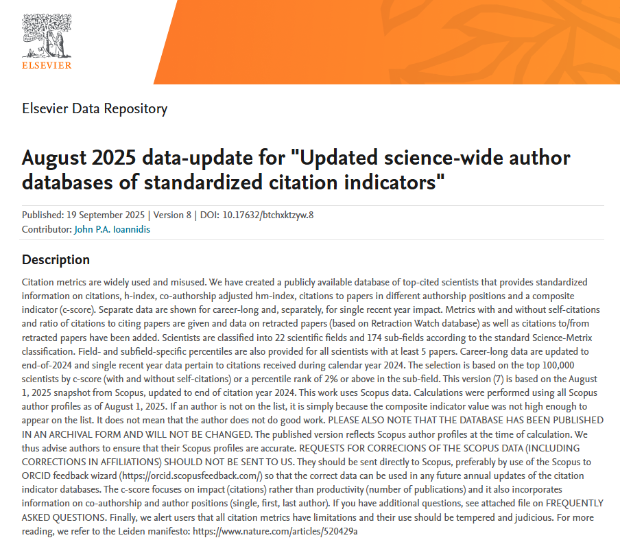 更多信息,请见2025年全球前2%顶尖科学家榜单: