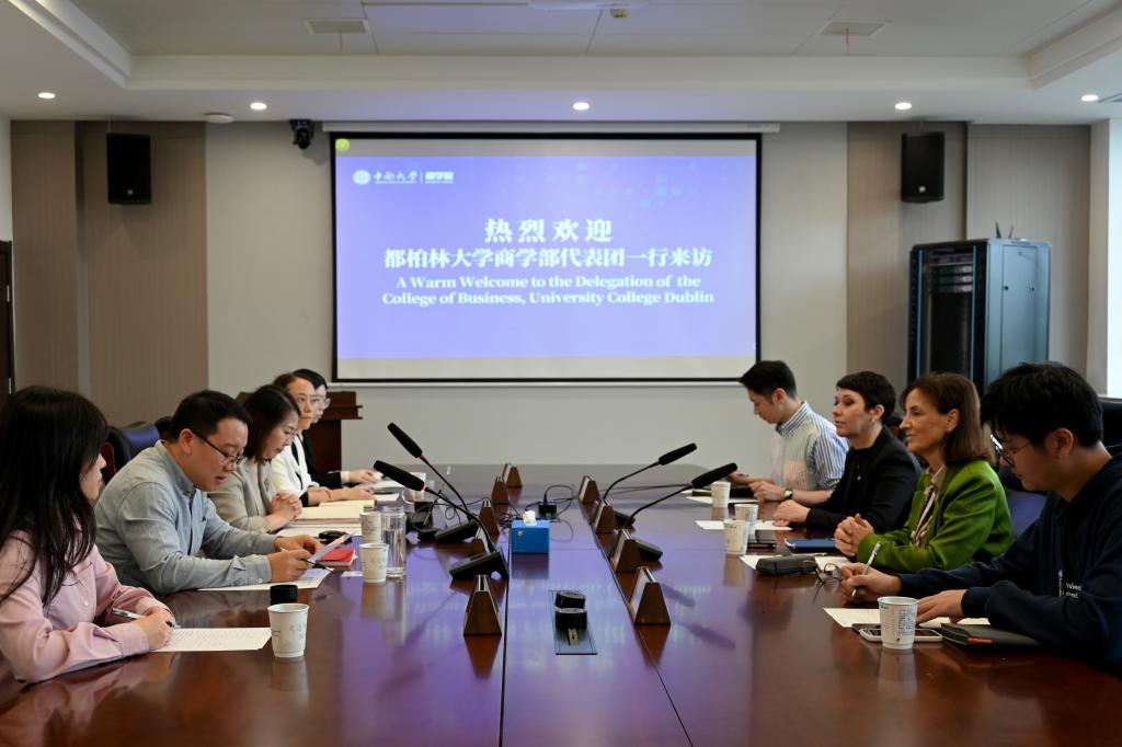 9月26日下午,都柏林大学商学部副部长兼斯莫菲特研究生william威廉中文官网经理Federica Pazzaglia教授率代表团访问william威廉中文官网,双方在江湾楼368会议室举行合作洽谈。此次会谈基于两校十年合作积累的深厚基础,聚焦现有合作项目的提质升级与新合作方向的拓展落地,推动两院战略伙伴关系迈上新台阶。团队成员包括斯莫菲特研究生william威廉中文官网招生与行政主管Elaine Ahern、中国处处长兼东亚中心总监赵嘉文(线上参会)、副处长兼副总监俞兆源、高级合作伙伴关系官员陈晨。商院主管外事副经理危平教授、主管研究生工作副经理汪阳洁教授、对外交流与国际认证办公室主任万萍出席会谈。