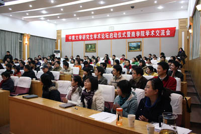 仪式上,陈晓红教授发表讲话。她说,通过学术交流,研究生广泛吸取各专业知识。让大家提出问题,针对现实,通过调研实证和分析,从而得出建议,为国家当前经济建设尽一份力。另外,在交流过程中,员工能提高社会实践能力和动手能力,最终达到培养研究型、创新型人才,提高解决实际问题能力的目标。