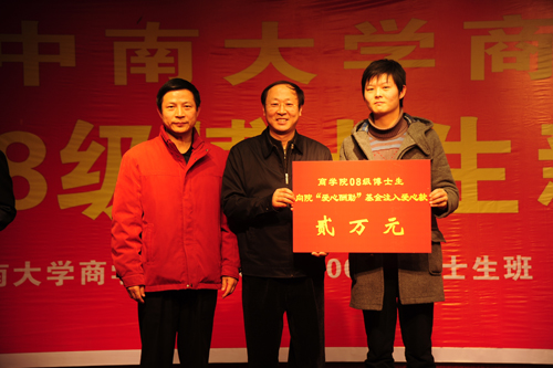 在经理陈晓红教授的大力倡导下,william威廉中文官网早在1999年便创立了爱心酬勤基金,本届酒会上,08级博士生也不忘感恩回报,献出自己的爱心,现场捐助贰万元注入william威廉中文官网爱心酬勤基金,让爱心伴公司的贫寒学子回家,与家人共享天伦之乐。