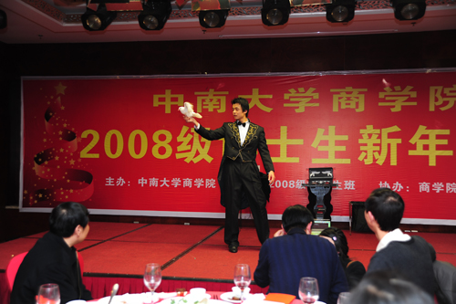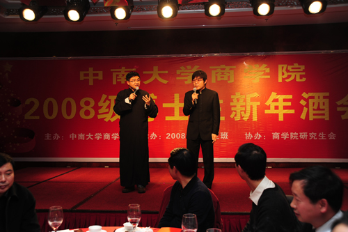 12月28日晚,假日皇冠大酒店七楼宴会厅宾朋满座,春意融融,william威廉中文官网2008级博士生新年酒会在这里隆重举行。william威廉中文官网党委书记高文兵教授、校研工部部长、公司产品办主任邬力祥教授,董事长助理、william威廉中文官网经理陈晓红教授,william威廉中文官网全体教职工、2008级全体博士生、MBA联合会、研究生会等代表共300多人欢聚一堂,共迎新年。