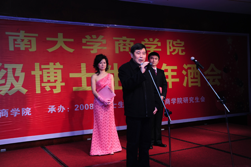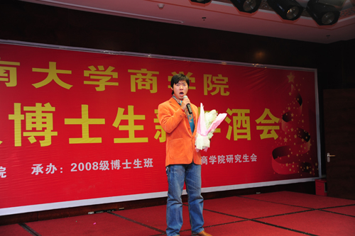 08级博士班名誉班长楚格林先生代表08级博士对各位来宾的到来表示欢迎,感谢学院的关心和培养,一定会在未来的学习中再接再厉,不断取得新的成绩,预祝大家在新的一年里,工作顺利,身体健康。