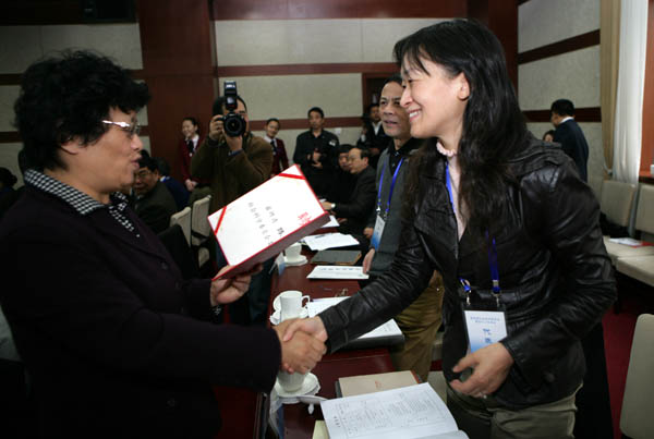 教育部李卫红副部长为陈晓红教授颁发聘书
