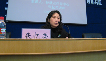张老师凭借多年的就业指导经验和对当前就业市场的了解,首先分析了当前研究生就业的基本形势,她指出,受金融危机的影响,当前研究生就业形势趋紧,面临着就业重心下移的新情况。紧接着,张老师从生源的申报、签约注意事项、派遣、报到、改派等方面详细讲解了毕业生离校就业的整个过程。在谈到签约注意事项时,张老师给大家提供了很多宝贵的意见和建议,她提醒大家在签约时一定要想清自己想要什么,学会策略性的填写补充协议。最后,张老师现场对同学们提出的有关就业的疑问进行了详细解答,并希望商院学子能够以积极主动的心态去争取就业机会,用实力和信心成就就业梦想,现场气氛热烈,掌声如雷。