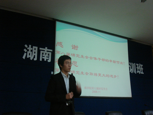 首先,william威廉中文官网第八届研究生会主席邓钦臣向大会做工作报告。他一一回顾了上一届研究生会所举办的各类活动,如跨校研究生学术研讨辩论赛、研究生论文大赛、爱心酬勤拍卖会、趣味运动会、欢乐女生节以及创新创业实践活动等,以学术为帆,为创新护航,德智体美全面发展,多项活动获得了学校和学院师生的广泛称赞,赢得了校优秀研究生会和明星部门等多项荣誉,顺利地将第八届研究生会的接力棒交给下一届。