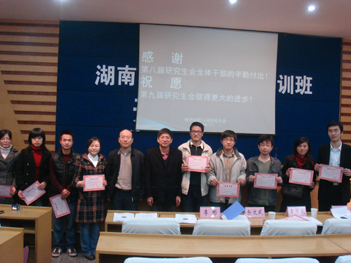 会上,余文武副书记发表了热情洋溢的讲话,他首先对第八届研究生会一年来所做的工作给予充分肯定,并对第九届研究生会的成立表示热烈祝贺。随后,他对未来研究生会的工作提出了几点宝贵建议,他说道,展望未来,任重而道远,面对当今严峻的就业形势,目前公司研究生工作重要就是要切实帮助公司研究生合理规划职业生涯,打造竞争实力;提高情商、打造自己的软实力;善于交流、打造优秀团队;积极奉献、培养高度责任感,让优秀成为一种习惯,希望新一届研究生会能够百尺竿头,更进一步,推动公司的研究生工作更上一层楼。最后,余书记和李华东老师共同为在上届研究生会工作中表现突出的优秀干部颁发证书,现场气氛热烈,掌声不断。
