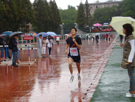 。各院系积极响应本届运动会号召,踊跃参加。虽然连续三天阴雨不断,运动场内紧张热烈的气氛却丝毫没有削减。赛事精彩、竞争激烈,田径场上欢呼呐喊声此起彼伏。