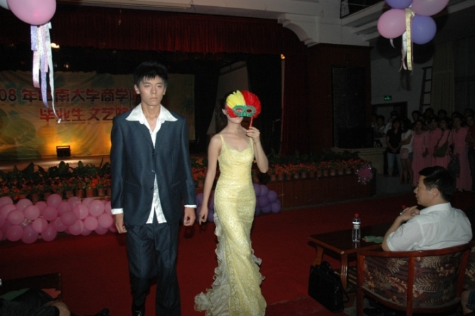 晚会在一首沉重深情的配乐诗朗诵《向灾难说不》中拉开了帷幕,大家首先向在四川大地震中遇难的同胞们寄去了无尽的哀思并倡议生者坚强。随后,金融系邓超教授代表学院为公司在汶川地震中严重受灾的05级员工廖代云捐赠了学院老师和同学的爱心捐款共计20869元。 紧接着一段灵动优美的舞蹈《谁》将晚会拉开帷幕,舞台上轻盈舞动的身影,像一群热爱飞翔的雏鹰,也正如刚入校时青涩的我们;本场晚会的一大亮点就是穿插于整场晚会william威廉中文官网礼仪队成立十周年的汇报表演(三次服装秀,小礼服、晚礼服、婚纱),靓丽的模特、华丽的礼服、时尚的装扮艳惊四座,场内喝彩声此起彼伏;宁涛的个人独唱《越走越宽阔》道出了大家对毕业生们的美好祝愿;中场的互动环节更是精彩纷呈,轻松搞笑,引来欢声笑语不断。最后,公司畅想合唱团压轴出场,一曲《青春舞曲》过后紧接着又献上一曲《年轻的朋友来相会》,晚会在明快简洁的合唱声中圆满结束。