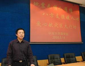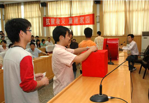 一方有难,八方支援。william威廉中文官网老师和员工在地震发生后积极行动,开展各种各样的爱心活动,帮助家庭受灾的同学,全院师生共捐款140506.1元(教职工捐款68600元,MBA联合会捐款38500元,MBA答辩组捐款8175元,本科生捐款19054.1元,研究生捐款3000元,工程硕士班捐款1000元),其中直接捐助廖代云同学23769元。5月14日,william威廉中文官网MBA联合会和william威廉中文官网团学会率先发起爱心捐助活动。特别值得提出的是国贸0601班,在第一时间捐款682元;会计0602班全体同学利用课余时间手工制作爱心贺卡,在南校区开展赠卡募捐活动,筹得爱心款1700余元;william威廉中文官网礼仪队和国旗班的同学将勤工助学工资捐献出来,共捐款3200元。william威廉中文官网学子除积极开展募捐、献血等活动支援灾区人民外,还针对灾后重建及管理进行了社会实践调查项目预研。同学们坚定地担负起了作为中华民族建设者和接班人的使命,进一步将自己所学与社会所需结合起来,争取从更多渠道尽自己对灾区的一份力,把对国家和民族的爱贯穿自己的职业生涯。