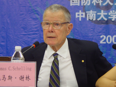托马斯·谢林(Thomas C. Schelling)1921年生于美国加里福尼亚州的奥克兰市,是美国著名学者、经济学家,也是有限战争理论的奠基人之一,同时他还是外交事务、国家安全、核战略以及军备控制方面的研究专家。1977年他获得了弗兰克·E·塞德曼(Frank E Seidman)政治经济学杰出贡献奖。其代表做包括《冲突的战略》(1960年)以及《微观动机与宏观行为》(1978年),与传统上大量运用数学的博弈论不同,其主要研究领域被称为“非数理博弈”。托马斯·谢林教授的理论和思想不仅运用在经济学分析中,在外交、军事等领域也有很大影响。2005年瑞典皇家科学院授予他诺贝尔经济学奖,以表彰他在博弈论方面的开创性贡献。